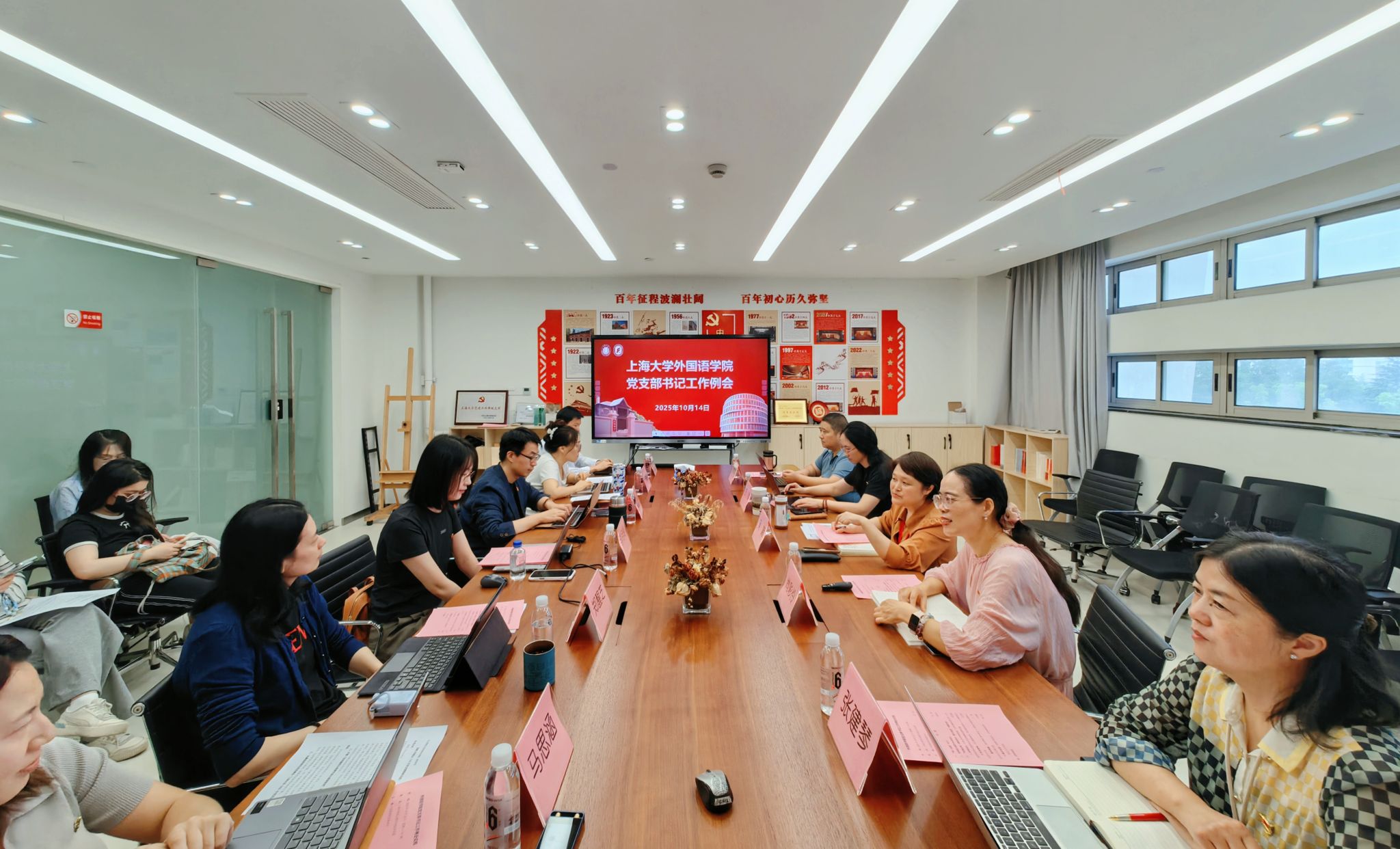为深入学习贯彻习近平新时代中国特色社会主义思想,全面推进党支部标准化规范化建设,进一步提升基层党建工作质量,10月14日上午,外国语学院党委在宝山校区C412会议室召开党支部书记工作例会,会议邀请了上海大学党委组织员尚彩伶作专题培训,学院党委书记吴蔚,党委副书记、副院长贾小琴,副院长戴朝晖、张建琴,研究生党建中心主任马思涵,全体师生党支部书记参加会议。会议由吴蔚书记主持。