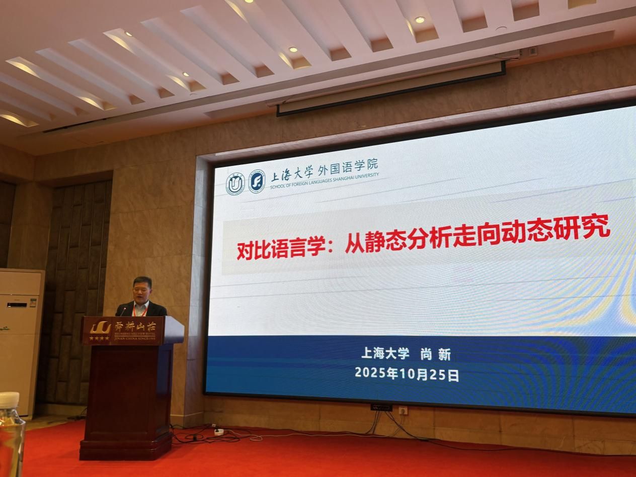 2025年10月24日至26日,中国英汉语比较研究会第十六次全国学术研讨会暨2025英汉语比较与翻译学术研讨会在山东济南成功举办。上海大学外国语学院院长、国家一级学会中国英汉语比较研究会副会长尚新教授率学院师生代表出席本次盛会,并在大会闭幕式上总结致辞。