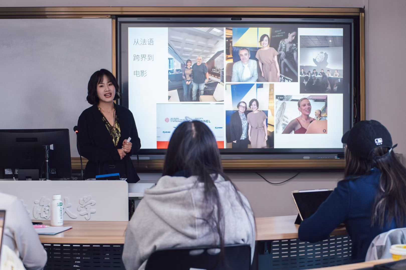 接着,朱婕女士深入阐释了法语的跨界价值。她指出,语言不仅是沟通工具,更是职场“敲门砖”。凭借法语优势,她成功获得与奥利维耶・阿萨亚斯、吕克・贝松等国际知名导演的专访机会,在戛纳电影节等国际场合搭建起高效沟通桥梁;在《锋味》剧组中,她通过法语与知名大厨建立专属沟通圈层,化解合作难题。正是法语与电影、经贸等专业领域的结合,让她形成了独特的复合竞争力。