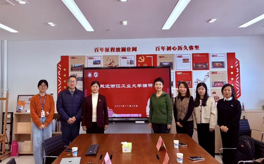 2025年11月28日上午,浙江工业大学外国语学院副院长张艺宁、日语系主任任萍、副主任金京淑、陈化仙、骨干教师刘晓杰一行到访外国语学院,双方在宝山校区C412会议室举行交流座谈会。外国语学院副院长张建琴、日语系主任赵莹波、副主任文雪出席交流会。