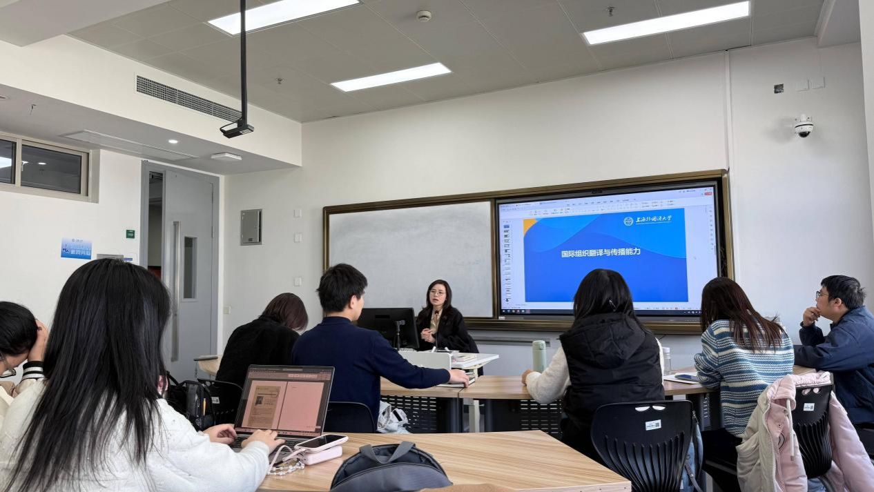 随后,王吟颖副教授系统梳理了联合国主要办事机构的分布与职能特点,并指出亚洲籍人才在国际组织中将迎来更多就业机遇。针对国际组织的能力要求,王吟颖副教授从语言能力、主题知识、议事规则及综合素养四个维度进行了深入解读,强调联合国六种官方语言地位平等、母语与外语的应用能力同等重要以及语言准确性比口音风格更为关键。在主题知识方面,王吟颖副教授指出联合国翻译岗位不设主题分工,议员需全面掌握常设主题,既要有跨领域常识广度,又需精通专业术语。接着,她结合中方对“核污染水”的官方表述与日方表述的立场差异等实例阐释政治语境把握的重要性,并重申批判性思维、职业伦理及保密准则的必要性。此外,她还分享了通过联合国官方考试、依托高校合作项目等就业与实习路径,推荐了外交部官网、《高级汉英口译教程》等权威资源与教材,为学生提供了可操作的学习资源。