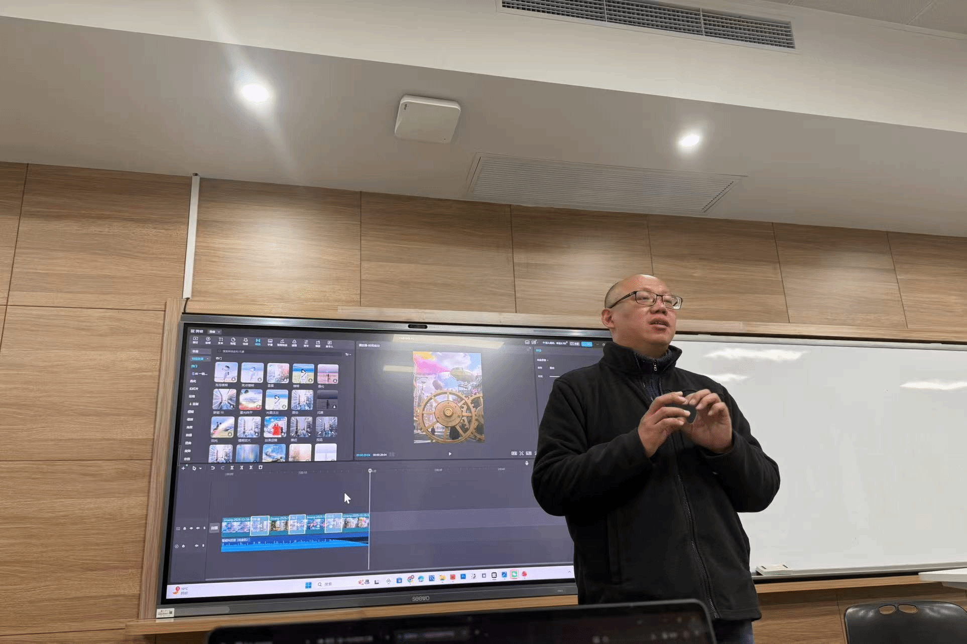 在讲座后半程实操阶段,谢文轶老师与代倩倩老师带领同学们运用星流和即梦AI工具来进行图片到视频的创作。代老师就AI使用的注意事项进行了介绍,帮助同学们更高效地使用AI进行视频创作。