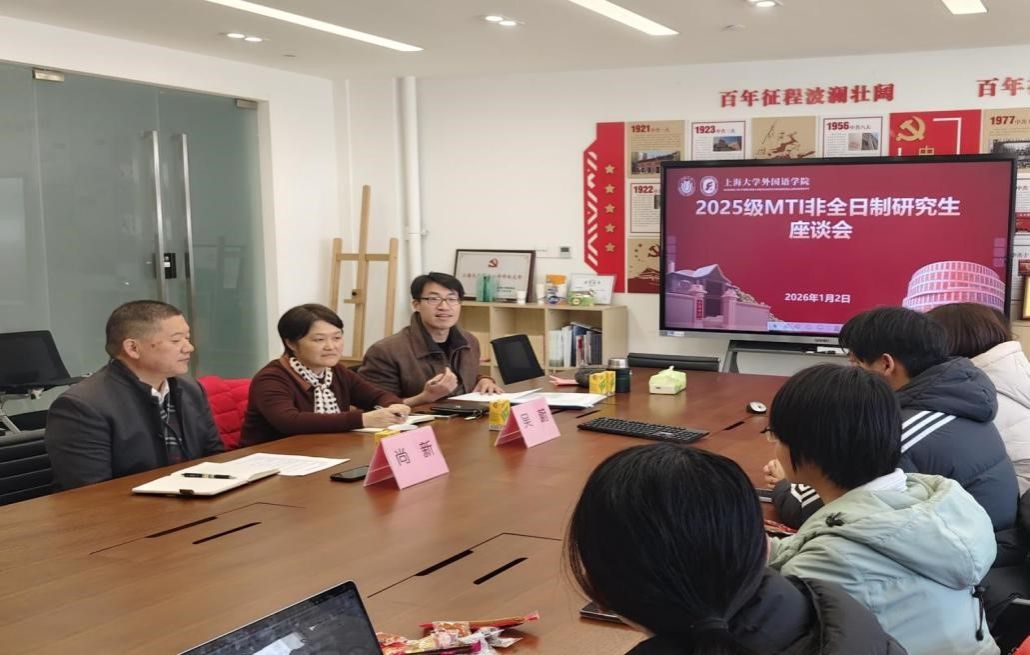 2026年新年伊始,外国语学院于1月2日在C412 会议室召开了2025级MTI(英语笔译、日语笔译)非全日制研究生座谈会。学院党委书记吴蔚、院长尚新、MTI教育中心副主任兼授课教师代表花亮出席此次活动,并与2025级非全日制MTI研究生进行了深入地交流。