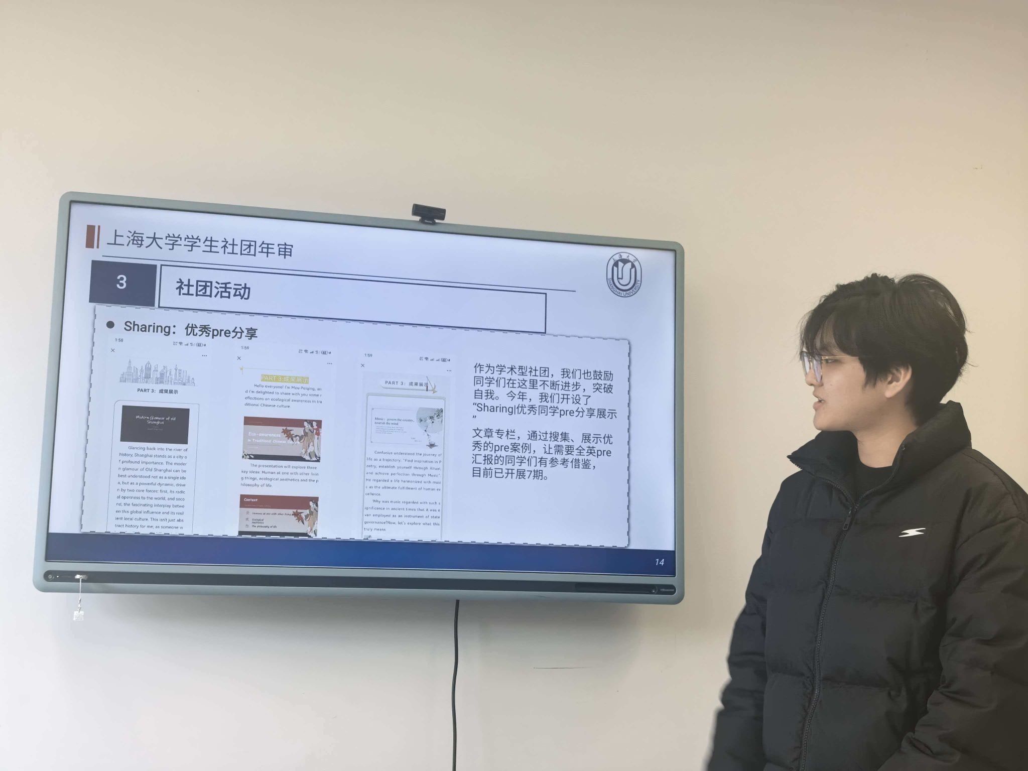 2025年12月30日,2025年外国语学院学生社团年度总结答辩会于宝山校区C106室顺利开展。外国语学院团委书记马思涵老师与莎翁剧社、日本语ACGN文化社、英语演讲与辩论社、英语协会及湖畔诗社负责人出席本次会议。