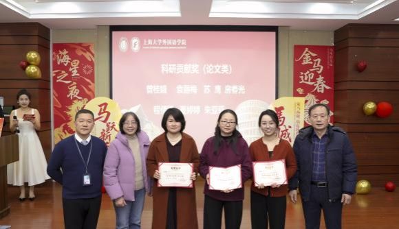表演过后,尚新院长与谢之君、周平两位老院长共同为2025年发表核心期刊学术论文和获得国家社会科学基金项目的老师们颁发“科研贡献奖”。