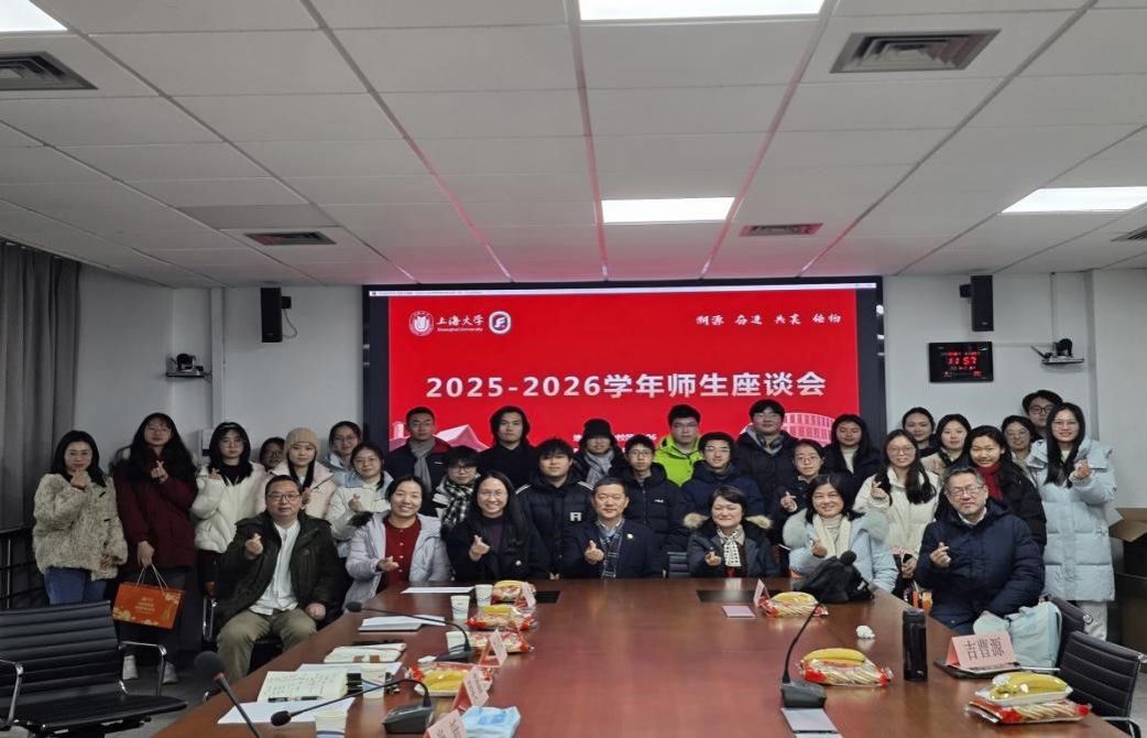 2026年1月20日上午,外国语学院2025-2026学年师生座谈会在宝山校区C506举行。学院党委书记吴蔚,党委副书记、院长尚新,党委副书记、副院长贾小琴,副院长张建琴,英语系主任马拯,日语系主任赵莹波,法语系主任王文新等老师与本研学生代表围坐一堂,围绕专业学习、学术研究、生涯规划、实习就业等议题展开深度对话,为学院人才培养与治理优化凝聚共识。本次座谈会由贾小琴副书记主持。