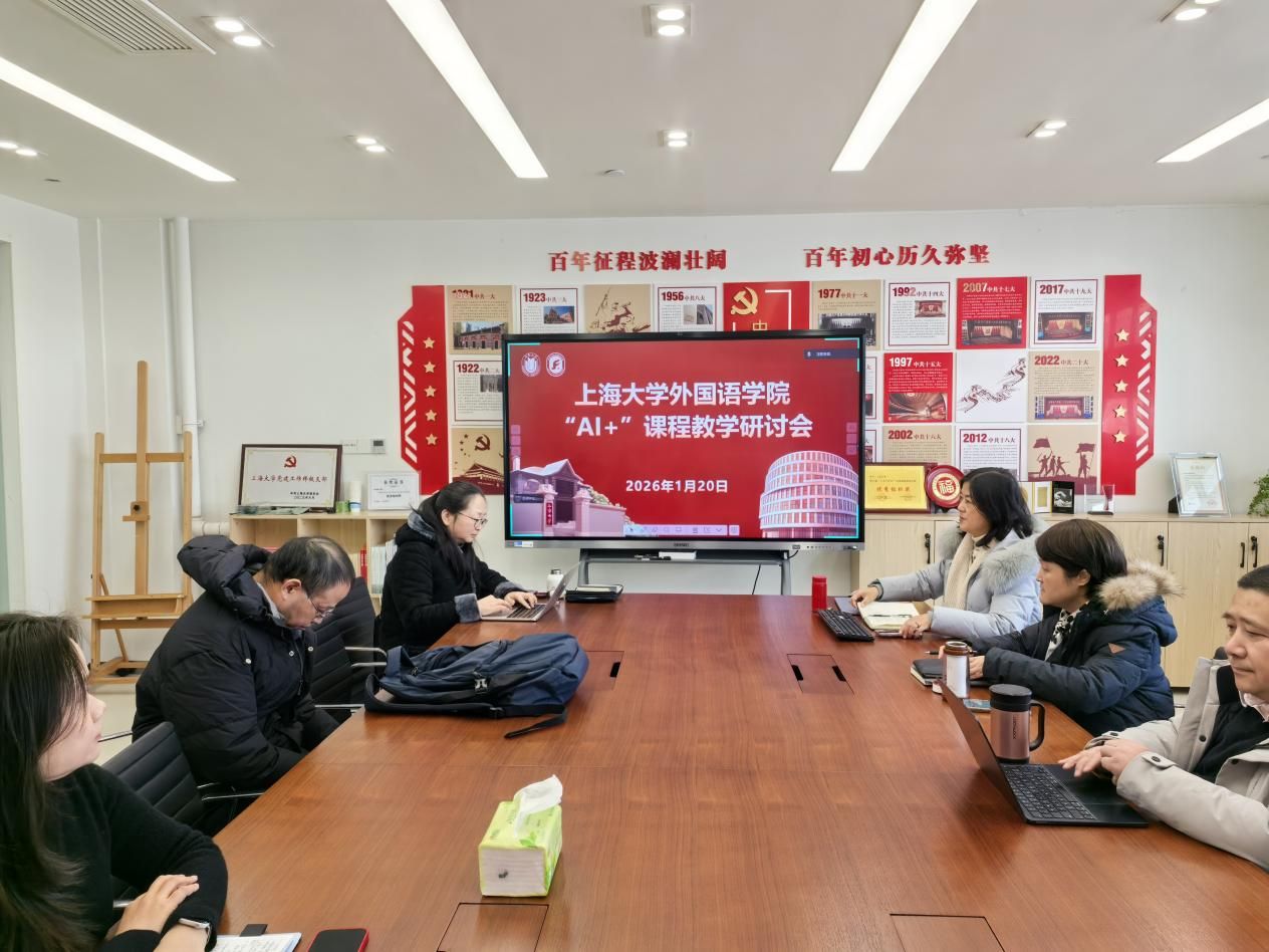 2026年1月21日,外国语学院在C412会议室举办“AI+”课程教学研讨会,党委书记吴蔚、副院长戴朝晖、张建琴及各系部“AI+”课程负责人参会,共同探讨人工智能时代外语教学的创新与发展。