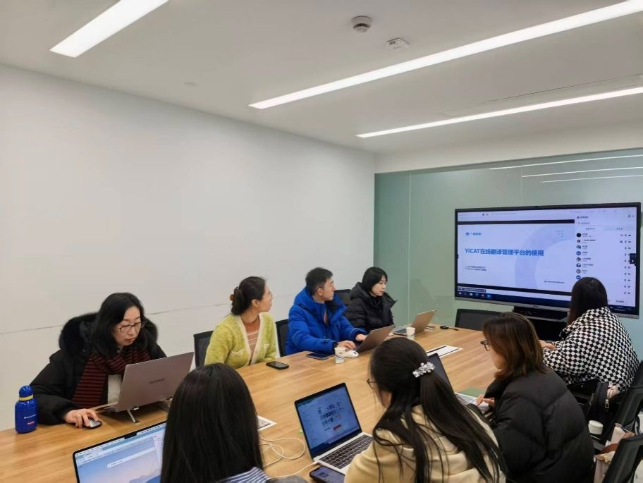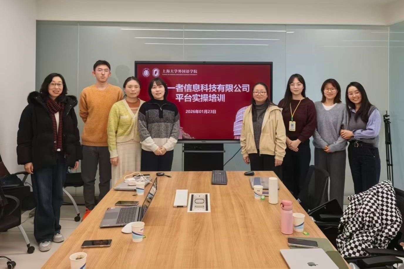 2026年1月23日下午,上海一者信息科技有限公司(以下简称“一者科技”)客户经理刘艳丽、产品经理赵明纯和孟子诚一行三人受邀赴上海大学外国语学院,为学院教师开展了关于YiCat翻译管理平台与YiSight区域国别研究平台的专场实操培训。本次培训采用线上线下相结合的形式,由外国语学院MTI教育中心执行主任朱巧莲译审主持。学院共有20余位教师参与此次培训。