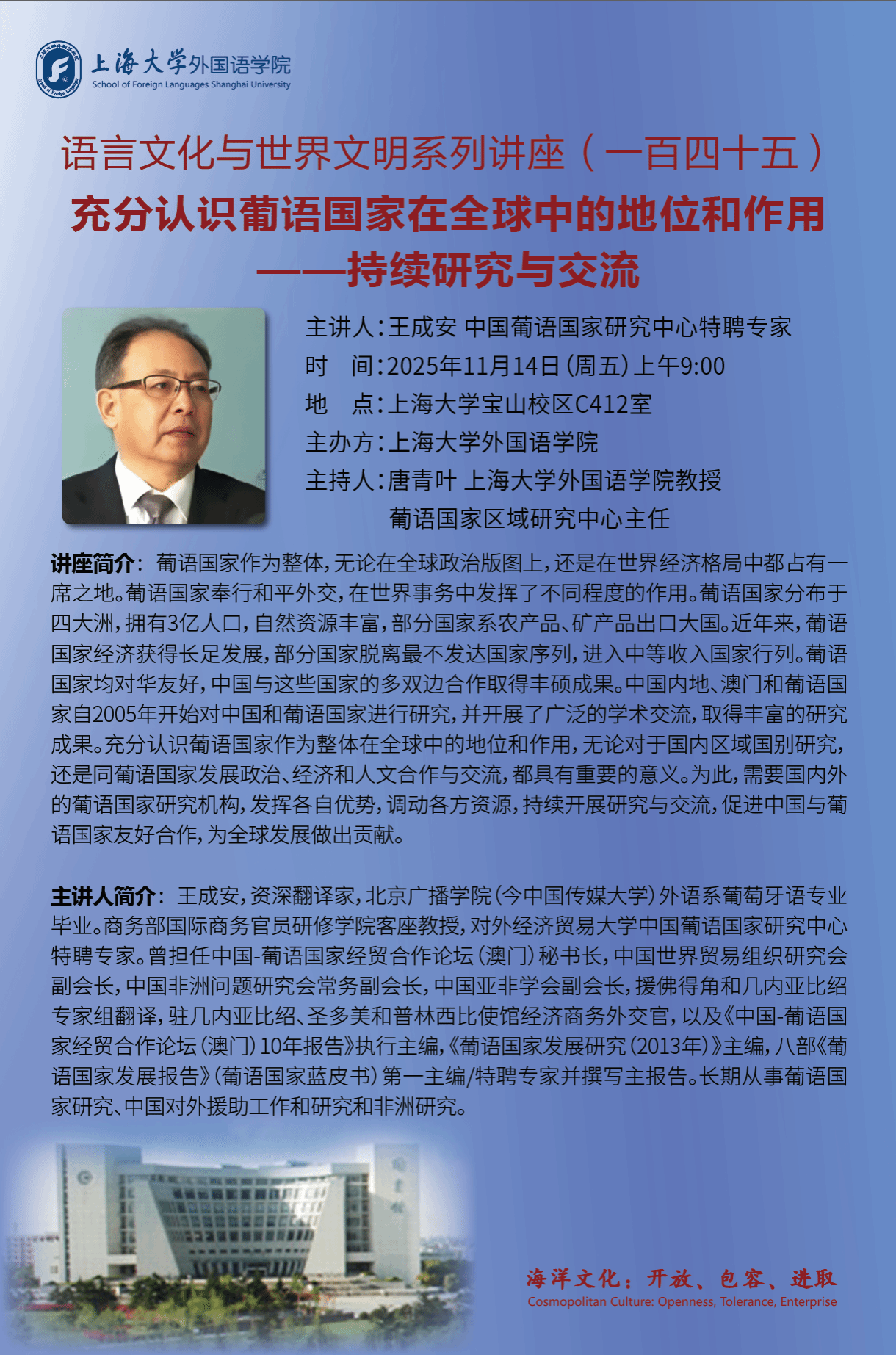 “语言文化与世界文明”系列讲座(一百四十五):充分认识葡语国家在全球中的地位和作用——持续研究与交流