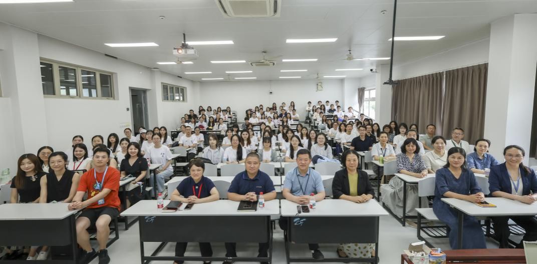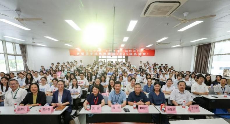 随后,院长尚新教授为新生们带来开学第一课,围绕“深植立德树人,着力培养卓越创新型‘大外语’人才”的主题展开讲解,从外国语学院的使命、愿景与目标、新文科理念下的外国语言文学学科和卓越创新型“大外语”人才培养这三大方面展开论述学院概况与人才培养新模式。他表示,学院将对接时代使命,通过AI技术赋能翻译与文化传播,为本硕博层次贯通的人才培养提供全面支持。