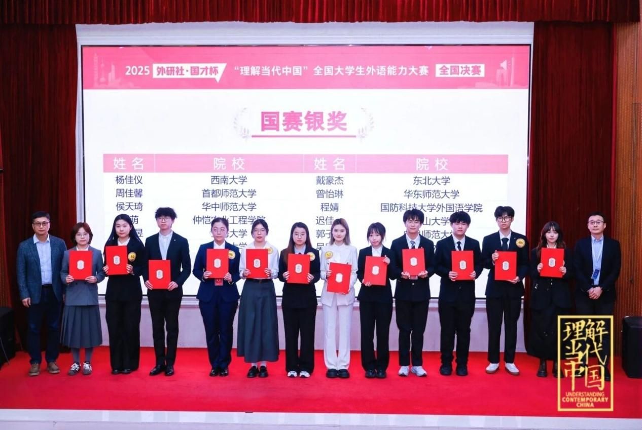 12月6日,2025 年“外研社·国才杯”“理解当代中国全国大学生外语能力大赛”多语种组全国总决赛圆满落幕。经过层层选拔与激烈角逐,外国语学院日语系学生李尚昱在众多优秀选手中脱颖而出,以出色的语言表达与深刻文化理解,荣获多语种组(日语组)国赛银奖,为我校争得荣誉。